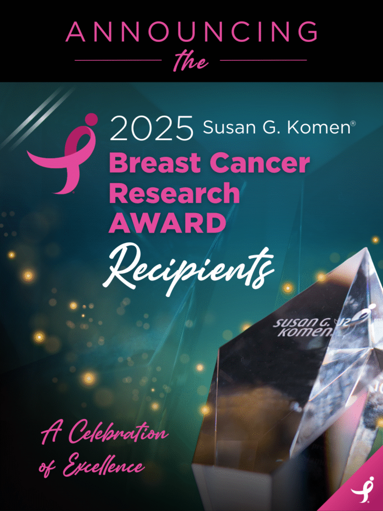 These five honorees exemplify Komen’s mission to save lives and find cures for breast cancer, faster. Their achievements highlight the importance of innovative research, personalized care and advocacy in transforming outcomes for people affected by this disease.