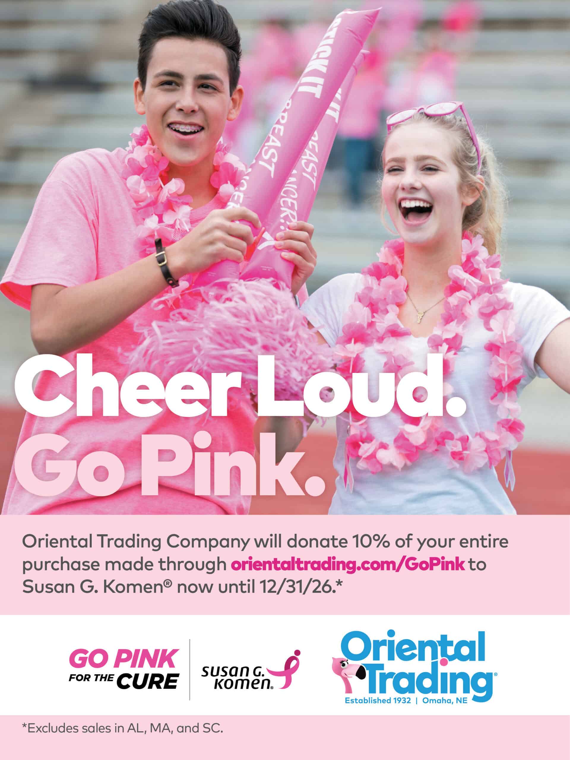 Susan G. Komen® and Oriental Trading Company have teamed up to make it easy to support our mission while celebrating March sports season. When you shop basketball and sports-themed party supplies, giveaways, and appreciation gifts through our dedicated Go Pink link, 10% of your purchase supports Susan G. Komen®.